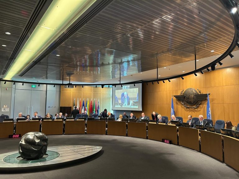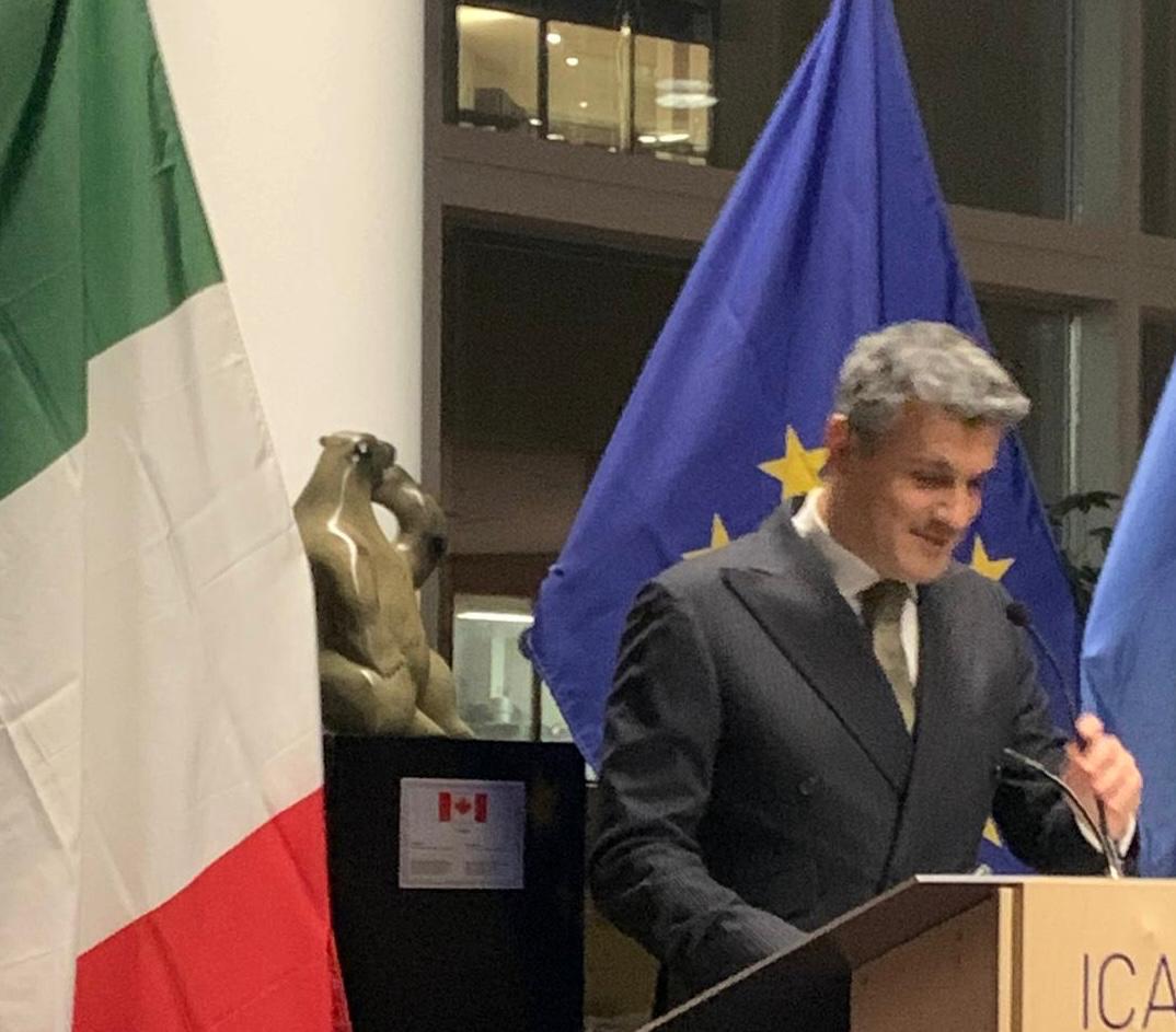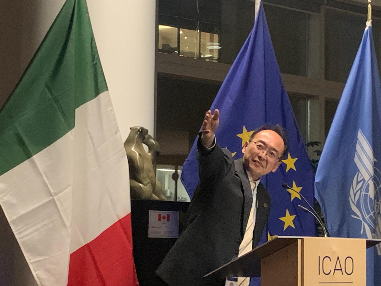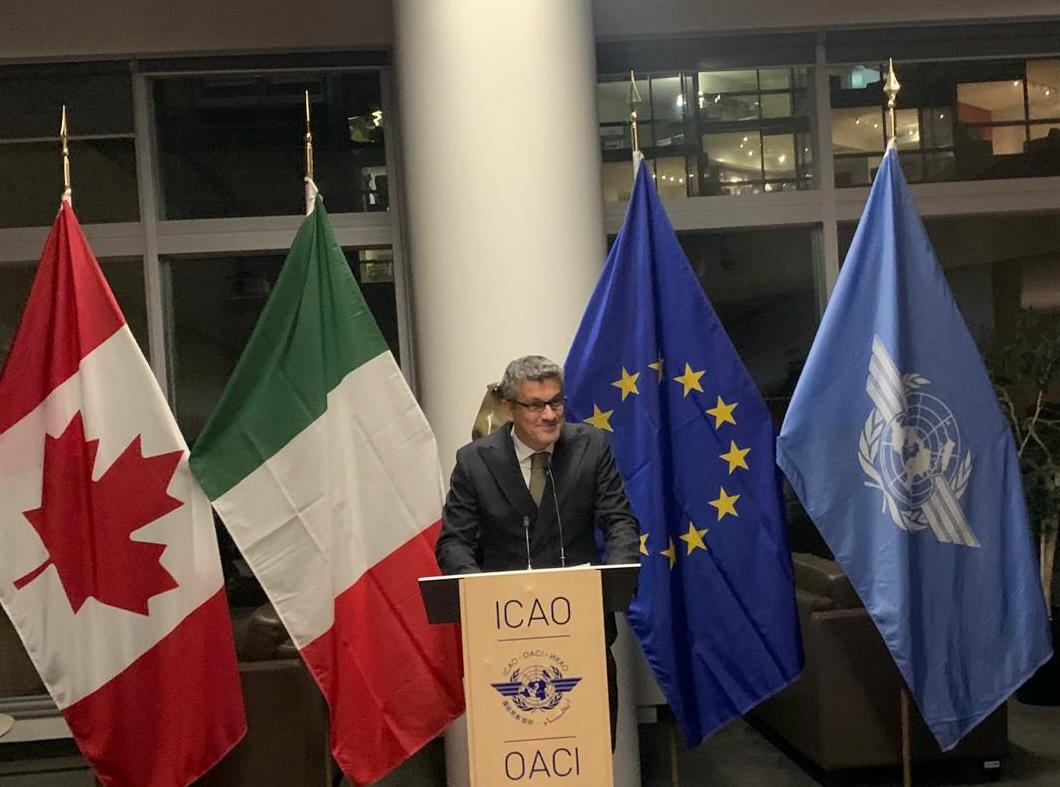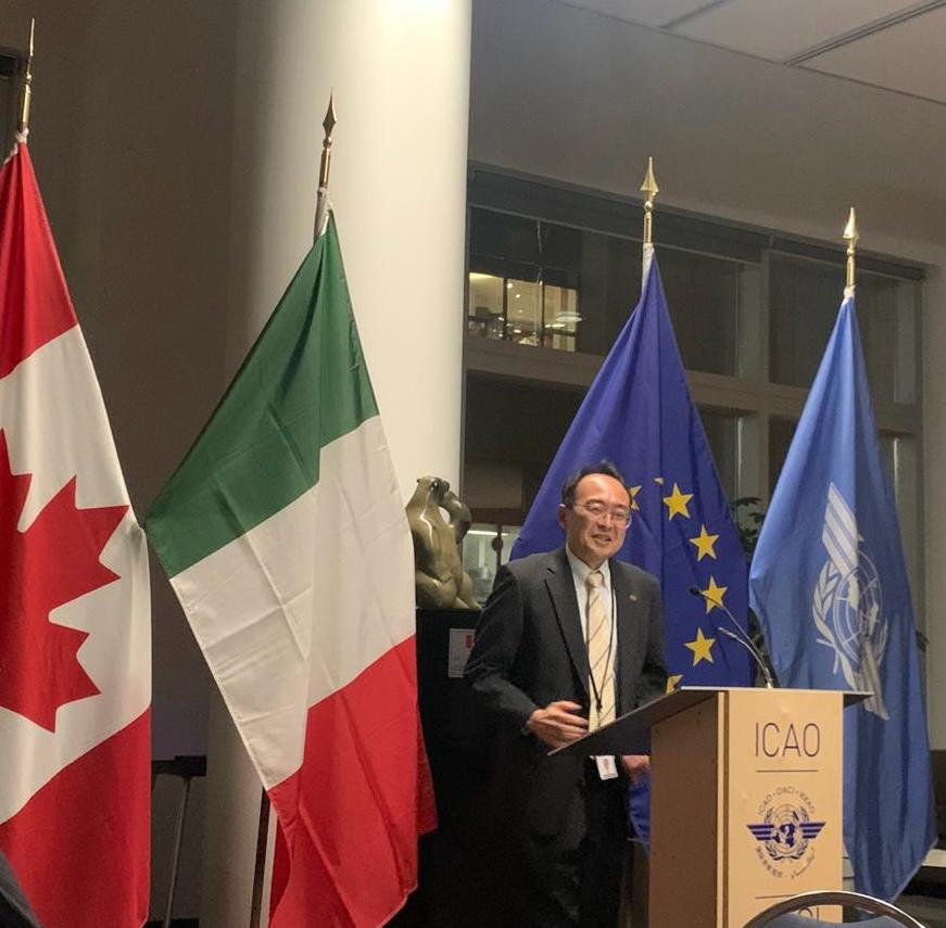 La Delegazione italiana ha ospitato un piccolo Evento di saluto e ringraziamento per il Presidente Salvatore Sciacchitano, che ha terminato l’incarico di Presidenza dopo 2 mandati consecutivi, per un totale di sei anni. Nelle foto Il Rappresentante Permanente italiano, Sergio Martes, il Presidente Sciacchitano ed il nuvoo Presidente del Consiglio ICAO, Toshiyuki Onuma, durante alcuni brevi indirizzi di saluto ai numerosi presenti.